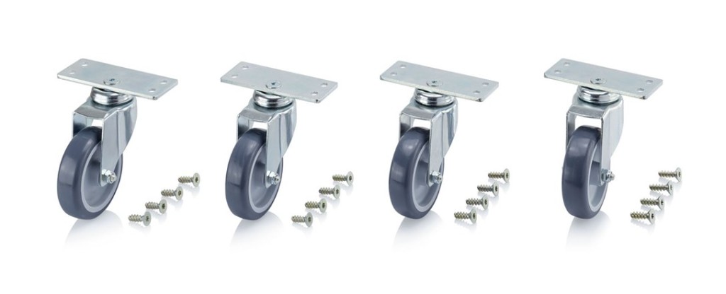 - 4 kółka skrętne, łożyskowane w komplecie z wkrętami