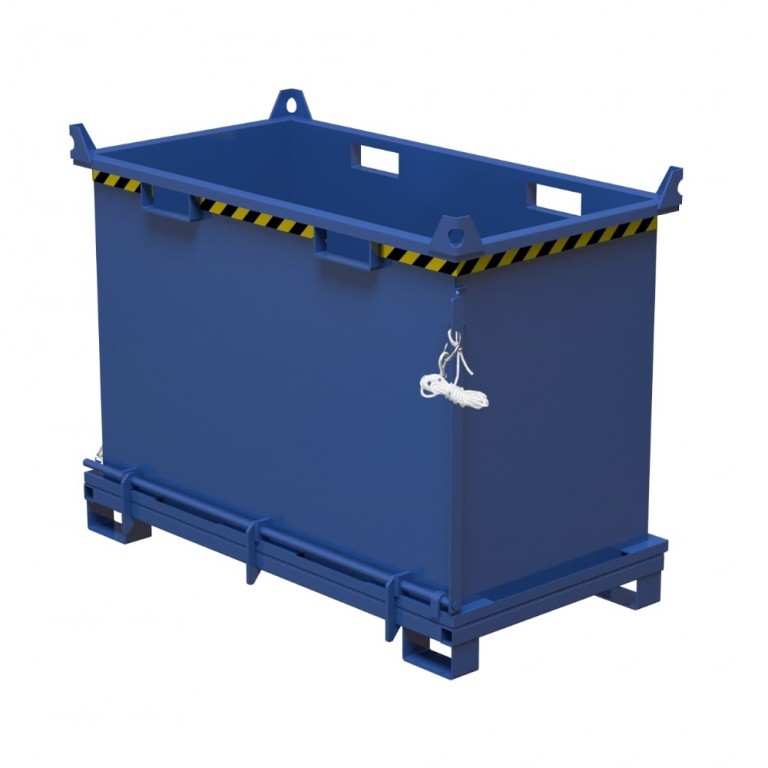 Solidny i wytrzymały kontener stalowy przechylny z otwieranym dnem idealny na różne odpady przemysłowe, materiały sypkie i inne(drewno, metal, plastik, materiały budowlane, trociny, wióry, itp.).