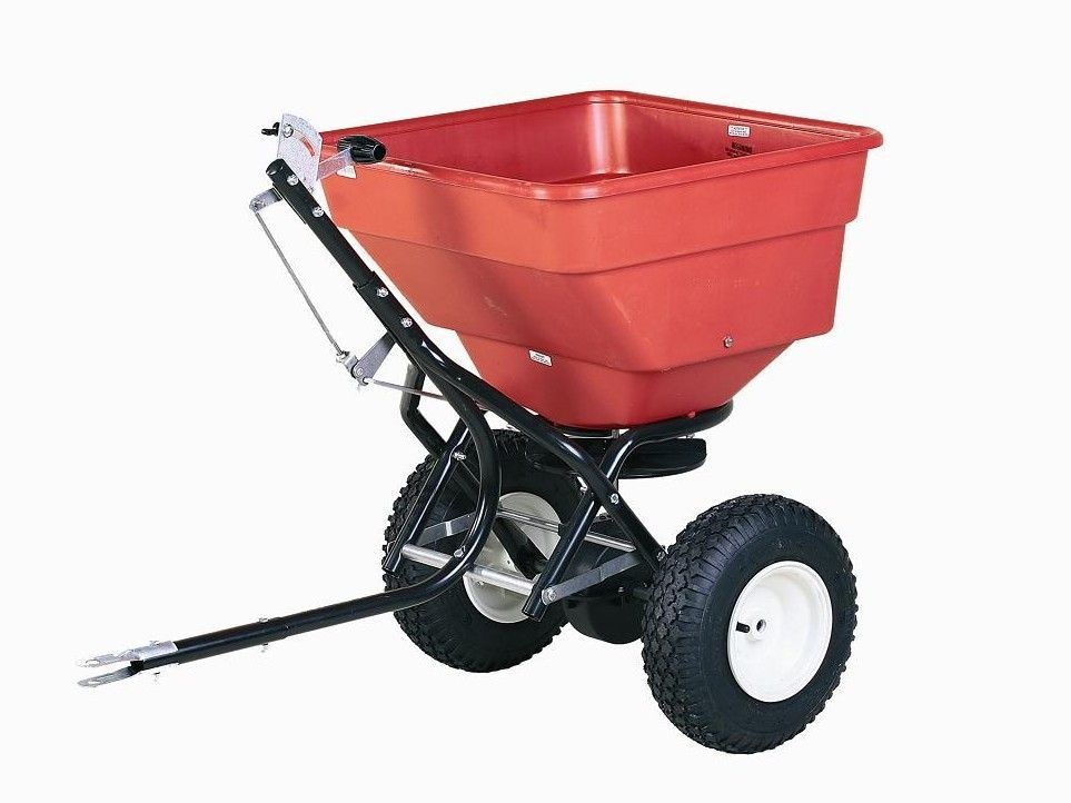 Wózek posypowy EartWay 50 l na pompowanych kołach w okresie zimowym służy do posypywania chodników sypkimi materiałami takimi, jak sól, piasek, itp., a w sezonie letnim można go wykorzystać jako siewnik do trawników lub urządzenie do wysypywania różnych nawozów.